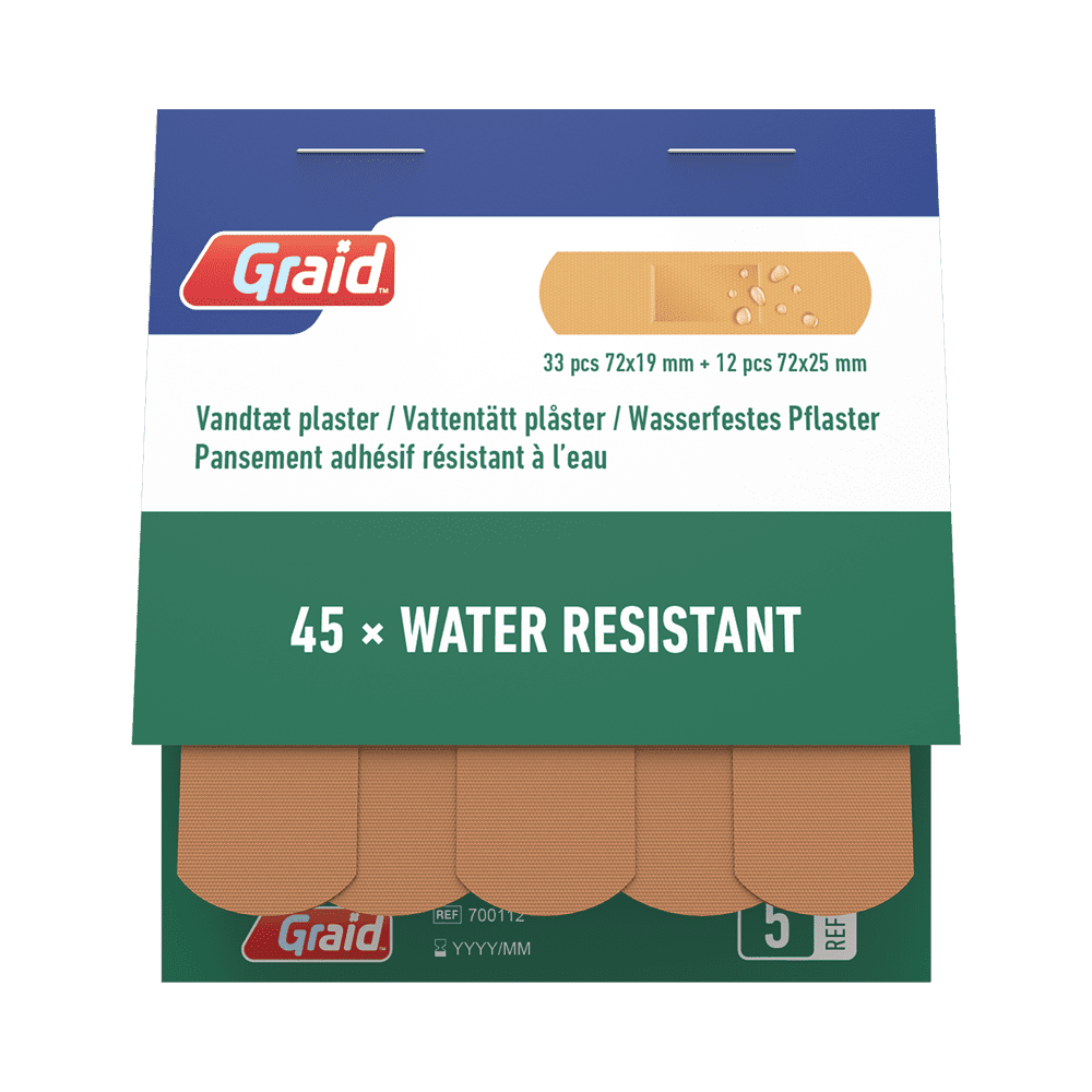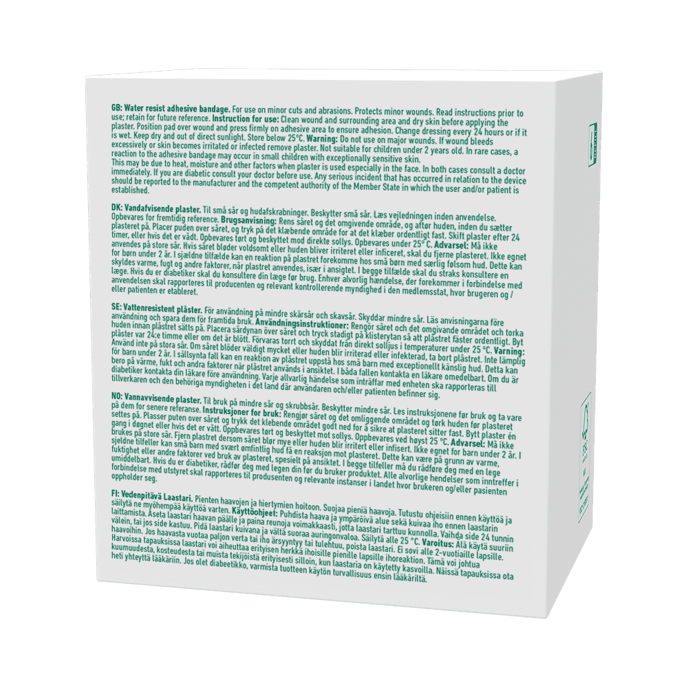 Water resistant adhesive plaster with perforations. For use on minor cuts and abrasions. Protects minor wounds. Easy fix feature.